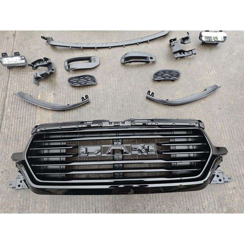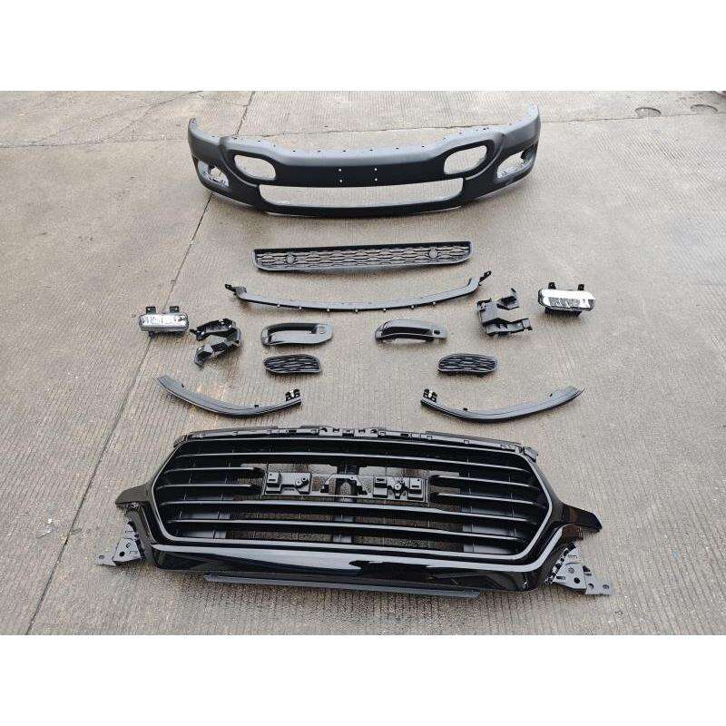 This front bumper kit, excluding the grille, is designed for DODGE RAM 1500 pickup trucks from 2019 to 2022, crafted from premium alloy steel for optimal strength and durability. It fits precisely with the vehicle's front structure, enabling quick installation using original mounting positions. The surface is treated with anti-corrosion plating to prevent rust and corrosion, suitable for both urban and off-road use. Its sleek yet robust design complements the truck's original lines, enhancing its overall aesthetic. Rigorously tested, it provides effective protection against minor collisions and road debris, making it ideal for replacement or upgrade.